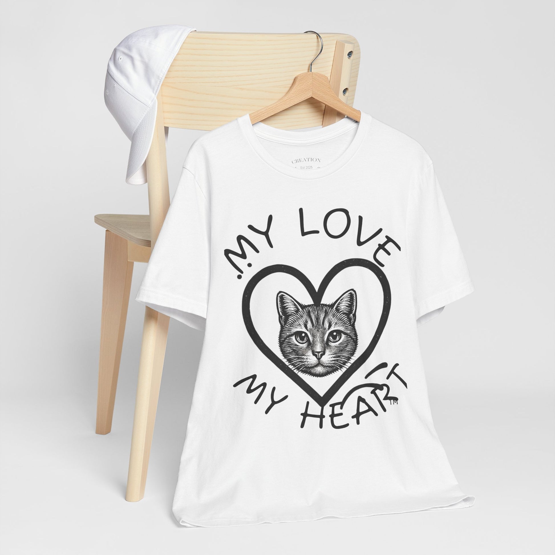 Cat Lover T-Shirt — "My Love My Heart" Kitty Heart Graphic Tee
