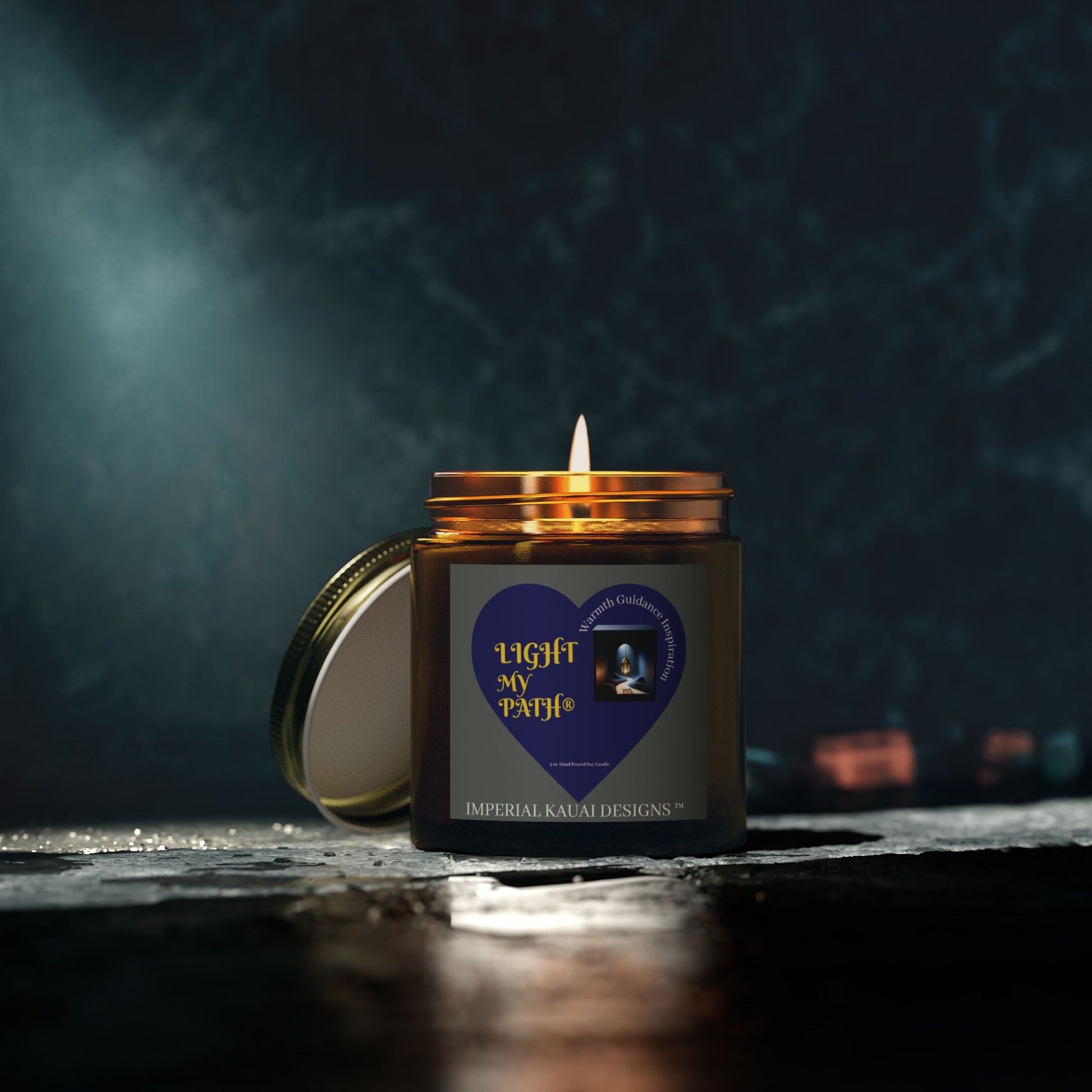 Amazing, the black background chosen is actually a picture of the night sky when the last Blood Moon was visible in the USA 2025. You can see a tiny red circle above the candle lid, that is the Blood Moon. This is a