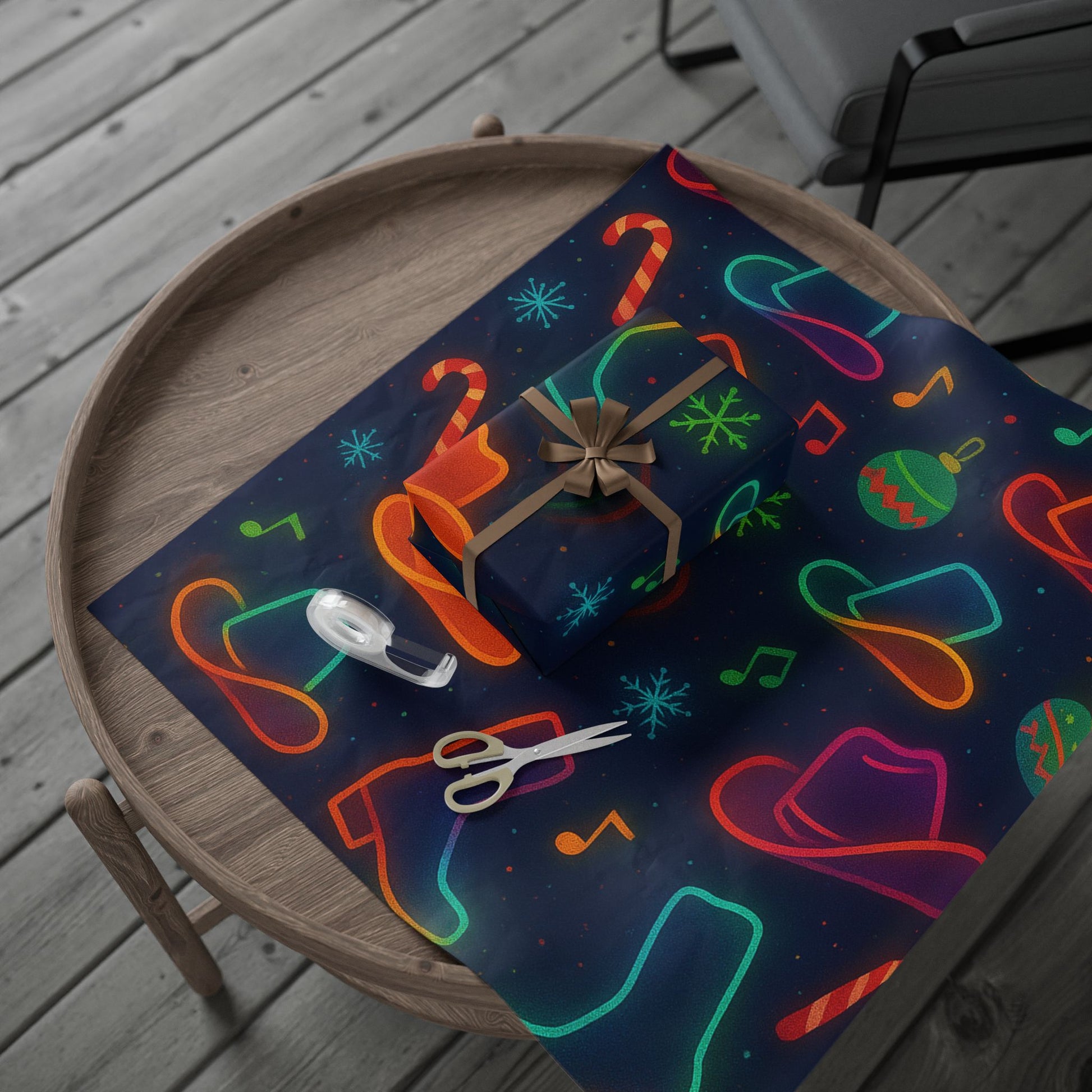 Vibrant Line Dancing Holiday Wrapping Paper, Festive Gift Wrap, Cowboy Boots and Hats, Christmas, Birthdays, Celebrations, Fun Gift Packaging