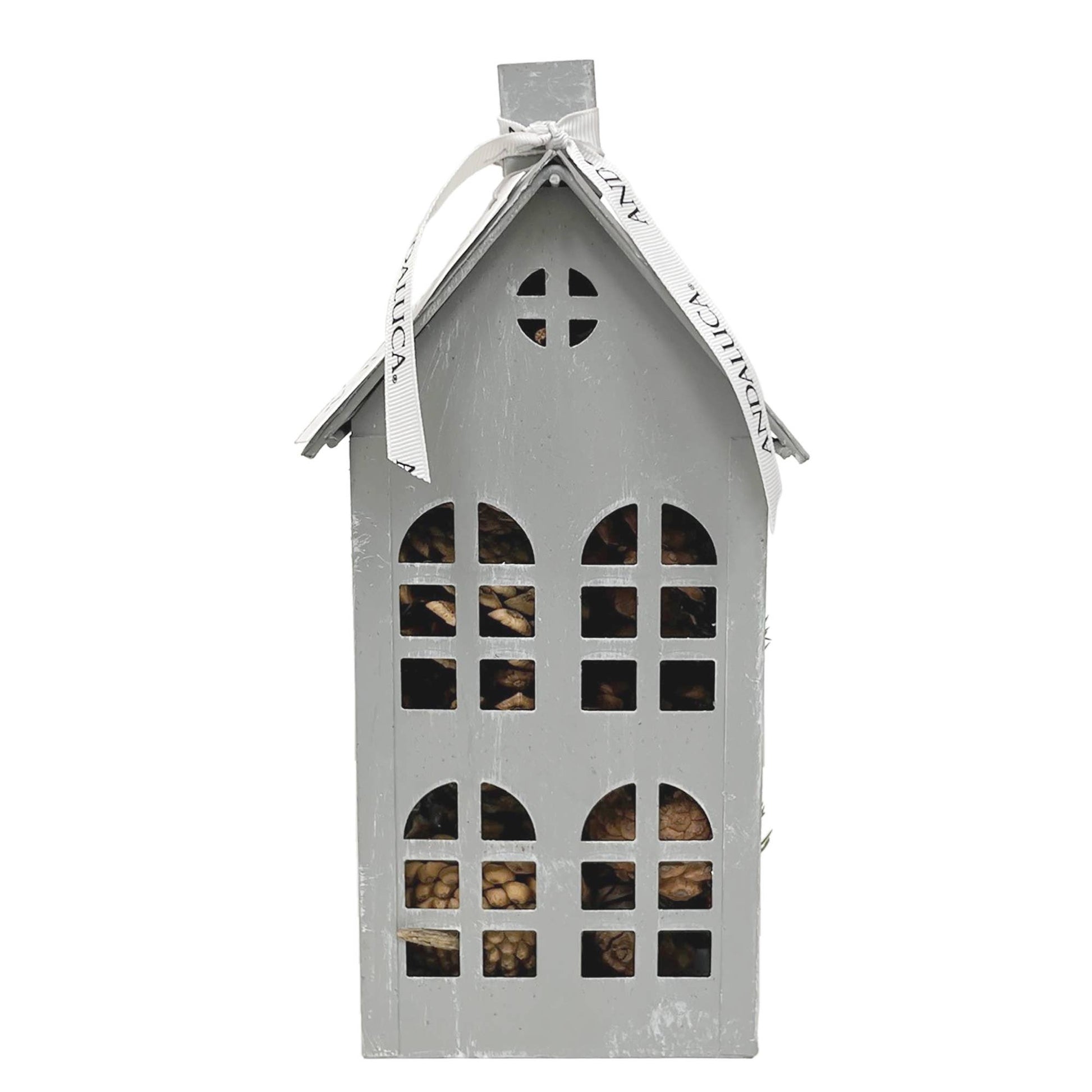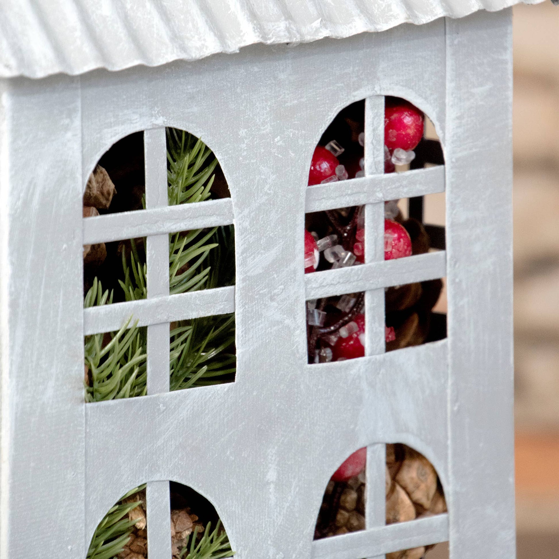 Scented with warm winter fragrance of cinnamon and spices, this delightful farmhouse style metal house is filled with potpourri comprised of natural pinecones and artificial pine sprigs and berry bunches.